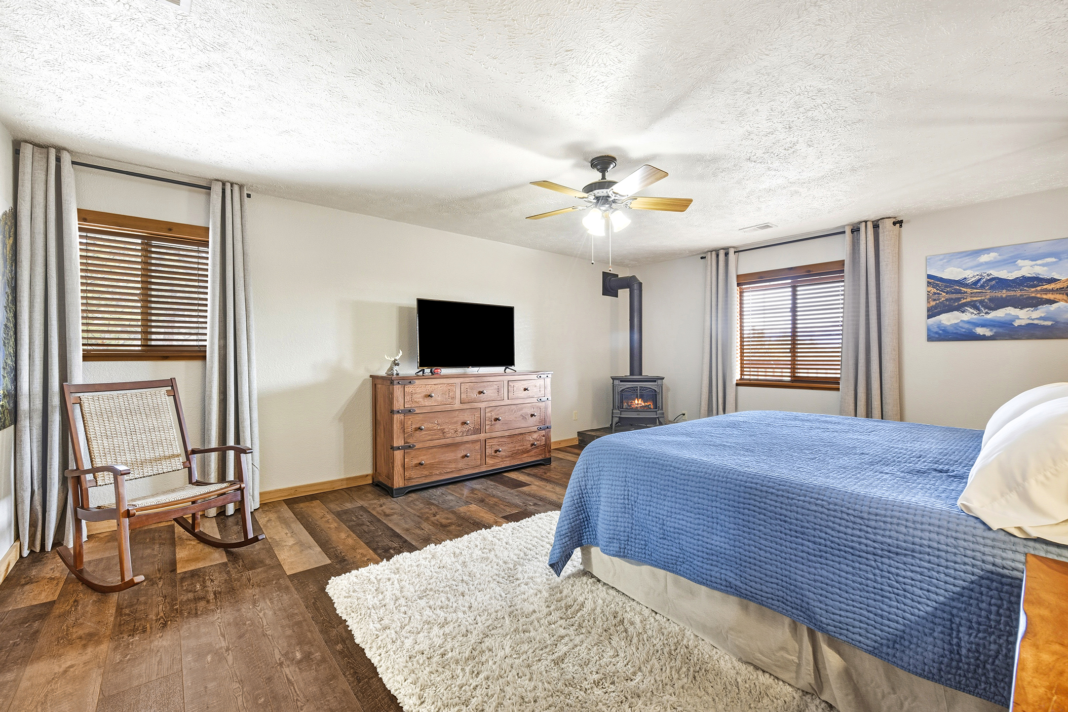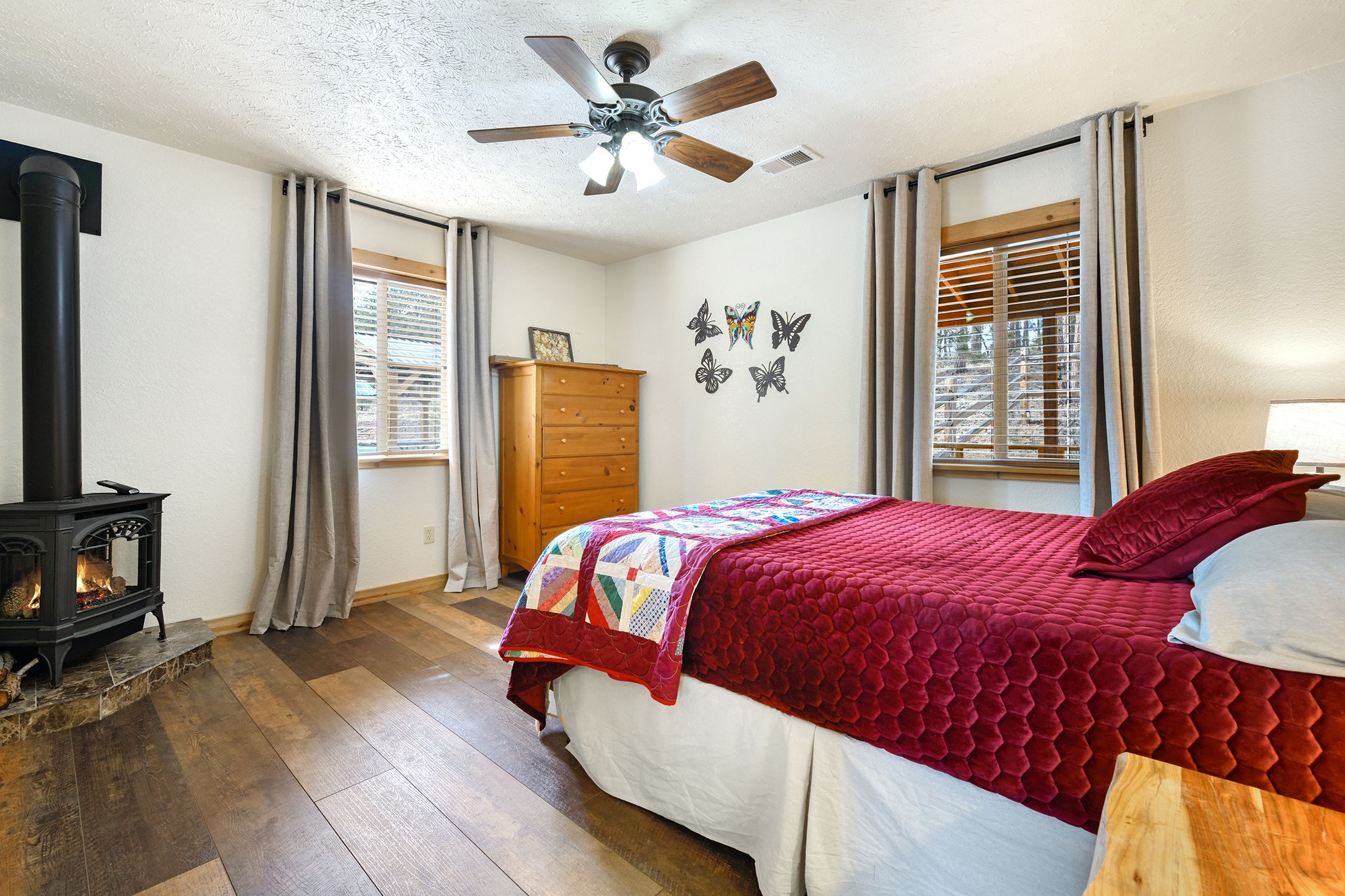 • New wood-burning stove in living room