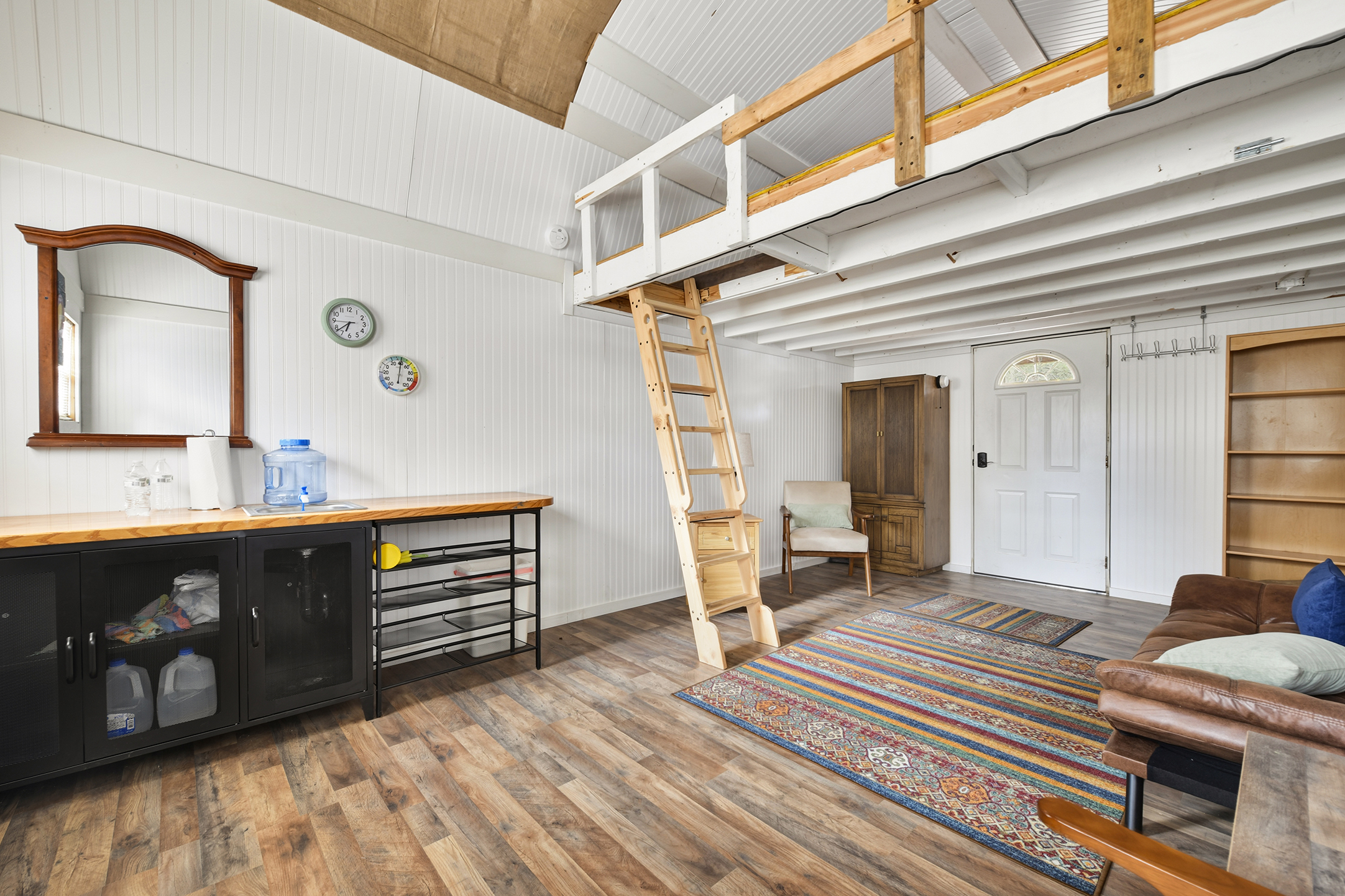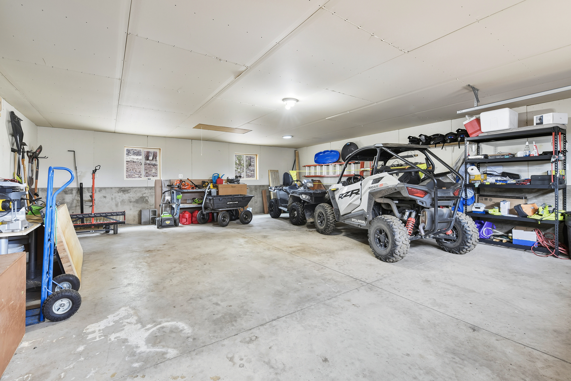 The guest cabin provides extra sleeping space for visitors, while the workshop is perfect for projects, storage, or equipment.